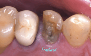 歯内療法専門医の医院で根管治療を受けた後に当院でクラウンを入れたいと来院された患者様です。歯茎にあった膿の袋は消失し、痛みもなくなりました。頬側の歯質がしっかり残ってたのでレジンコアとファイバーポストで土台を作りました。そのあとは、形態を整え用意しておいた仮歯を装着しました。歯茎の変化がないか確認するため、型取り(印象)は次回になります。形態を整える時の刺激で歯肉の位置が変化する可能性があるからです。よく、土台を建てた後に形成し、同日に印象をとることもあると聞きますが、原則は別日です!