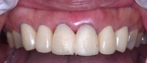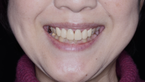 上の写真が完成した装着時の写真です。初診でいらした時から仮歯に置き換えて最終的なセラミッククラウンの装着までの作業がお分かりになると思います。