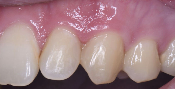 | 治療内容 | 象牙質まで達する隣接面の虫歯をラバーダム防湿下にて、コンポジットレジン修復を行いました。歯と歯が適切に接触するよう丁寧に処置を進めました。治療後の見分けがつかないくらい、綺麗に修復できました。 |